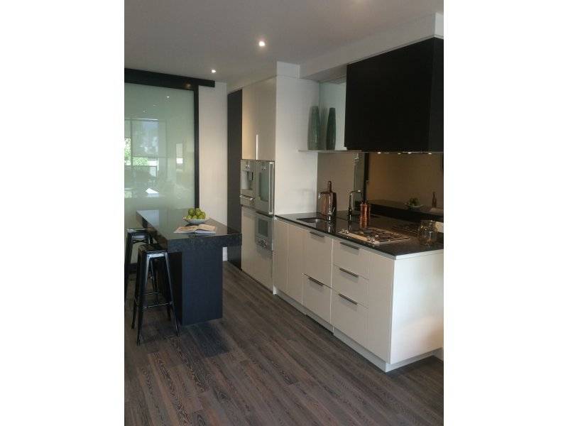 3 bedrooms, 2 Bedroom apartment. Reconstituted stone benchtop and splashbacks in kitchen complimented by Gaggenau appliances.